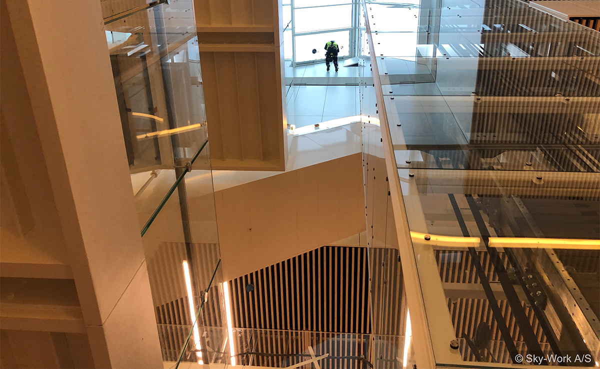 Sky Work A/S og Columbus Teknik A/S blev valgt til, at sikre indvendig serviceadgang til alle sky lights 14 m. over hovederne på alle rejsende og medarbejdere, i den nyeste del af lufthavnen.