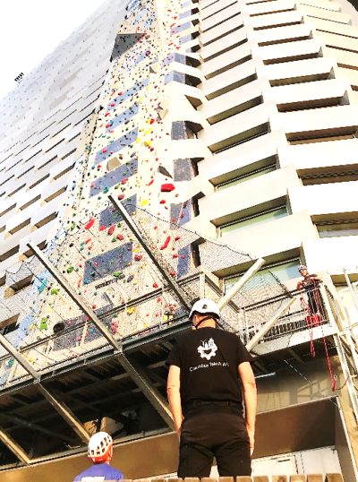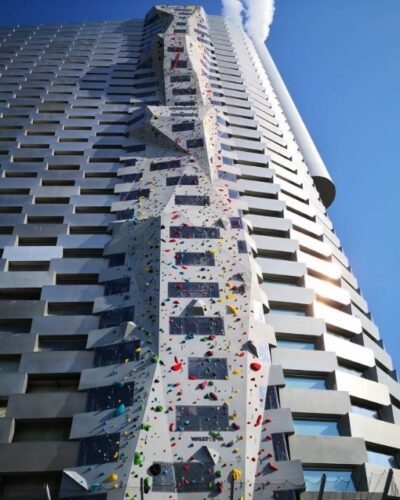Med sine 85 meters højde og 10 meters bredde – er klatrevæggen en klasse for sig, og åbner et helt nyt kapitel i fænomenet ”URBAN CLIMBNING”.